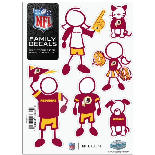 Show off your team pride with our Washington Redskins family automotive decals. The set includes 6 individual family themed decals that each feature the team logo. The 5" x 7" decal set is made of outdoor rated, repositionable vinyl for durability and easy application.