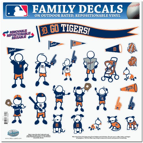 Show off your team pride with our Detroit Tigers family automotive decals. The set includes 25 individual family themed decals that each feature the team logo. The 11" x 11" decal set is made of outdoor rated, repositionable vinyl for durability and easy application.
