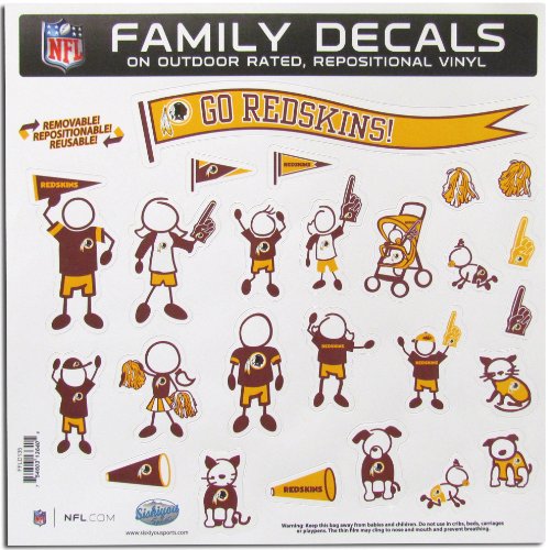 Show off your team pride with our Washington Redskins family automotive decals. The set includes 25 individual family themed decals that each feature the team logo. The 11" x 11" decal set is made of outdoor rated, repositionable vinyl for durability and easy application.